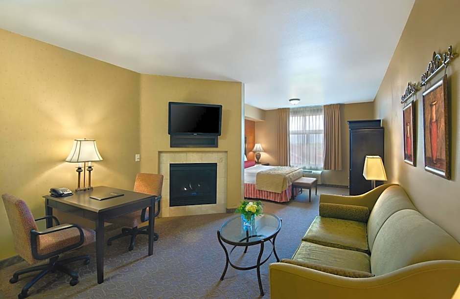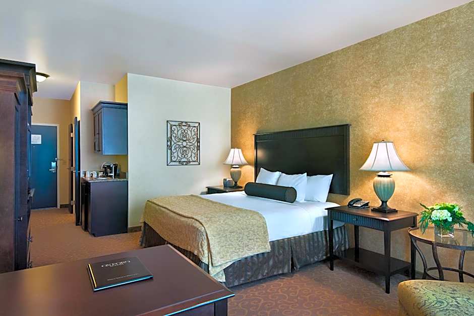 Offering the Oxford Suites signature premium bedding package, this room includes a sofa bed, 2 TVs, and a kitchenette. Additional amenities include a soaking tub, a gas fireplace, WiFi, and wired internet access.
